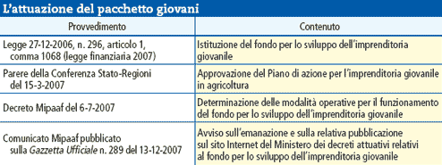 predisposizione dei 4 provvedimenti di attuazione del «pacchetto giovani»