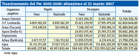 pagamenti non effettuati nel corso del 2006 sui Piani di sviluppo rurale»,