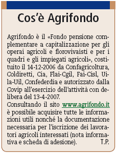Tfr dei lavoratori agricoli ad Agrifondo.