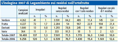 i risultati del rapporto «Pesticidi nel piatto 2007», che analizza la