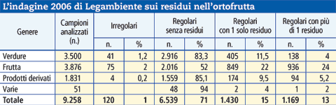 particolare nel 2005 il 71% dei campioni è risultato esente da residui (era