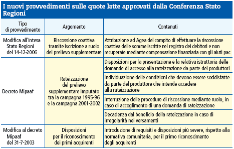 tre provvedimenti in materia di quote latte che presto saranno pubblicati