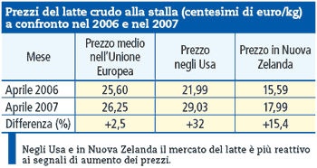 Negli Usa e in Nuova Zelanda il mercato del latte è assai più reattivo e