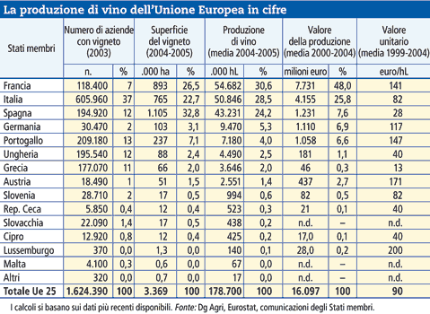 (siamo nell’Ue a 25 con oltre 1,6 milioni di viticoltori per una superficie